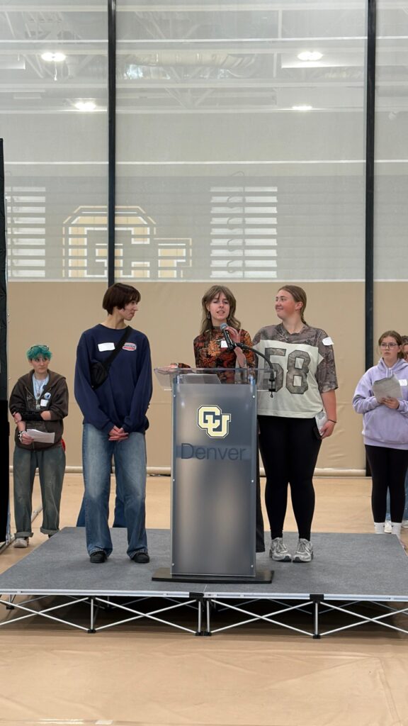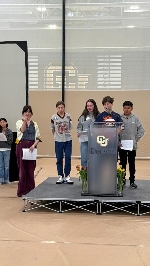 THEIVES’ GAMBIT WINS the Juried Award. ONCE THERE WAS wins the Readers’ Choice Award. Despite three inches of new snow, fourteen student judges were on hand from Denver, Longmont and Fort Collins to announce the award.